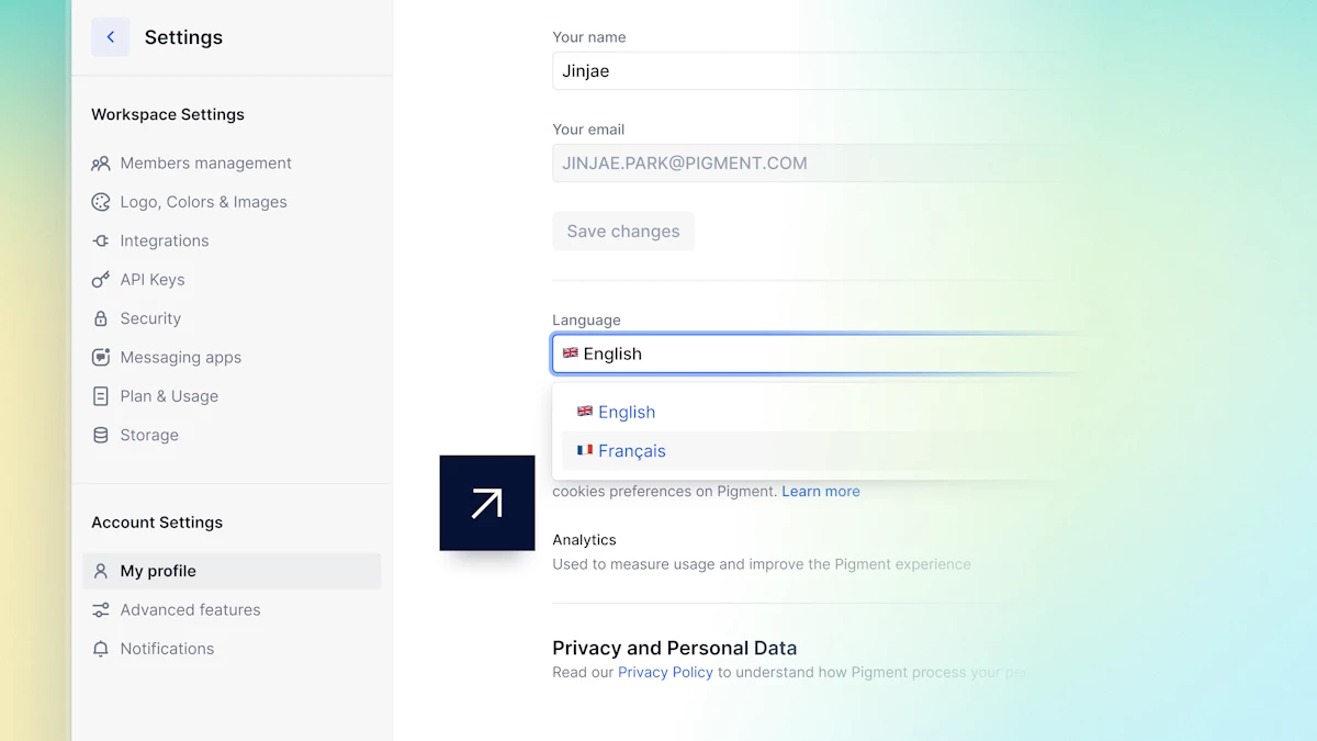 Calling all French users! The Pigment experience is now available in French! La plateforme a été traduite, ce qui signifie que chaque utilisateur peut choisir de voir les menus et autres éléments de l'interface en français en changeant la langue dans Mon profil. C'est déjà disponible, essayez-le dès maintenant !