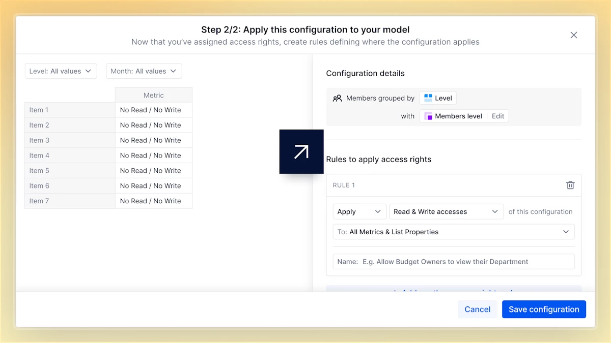 We’ve made managing access more intuitive. With User Remapping, you no longer need to include the User Dimension in every Access Rights Metric. Define access at an aggregated level—like Role or Region—and map users with a dedicated Metric.