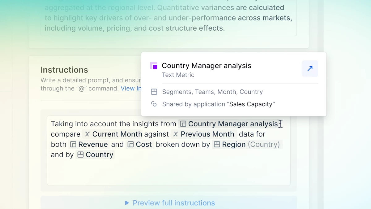 You can now reference text-type Metrics directly in Mission instructions. This lets you enrich your analyses with qualitative business comments, contextual explanations, or user-provided insights. These features unlock richer, more contextual analysis workflows.