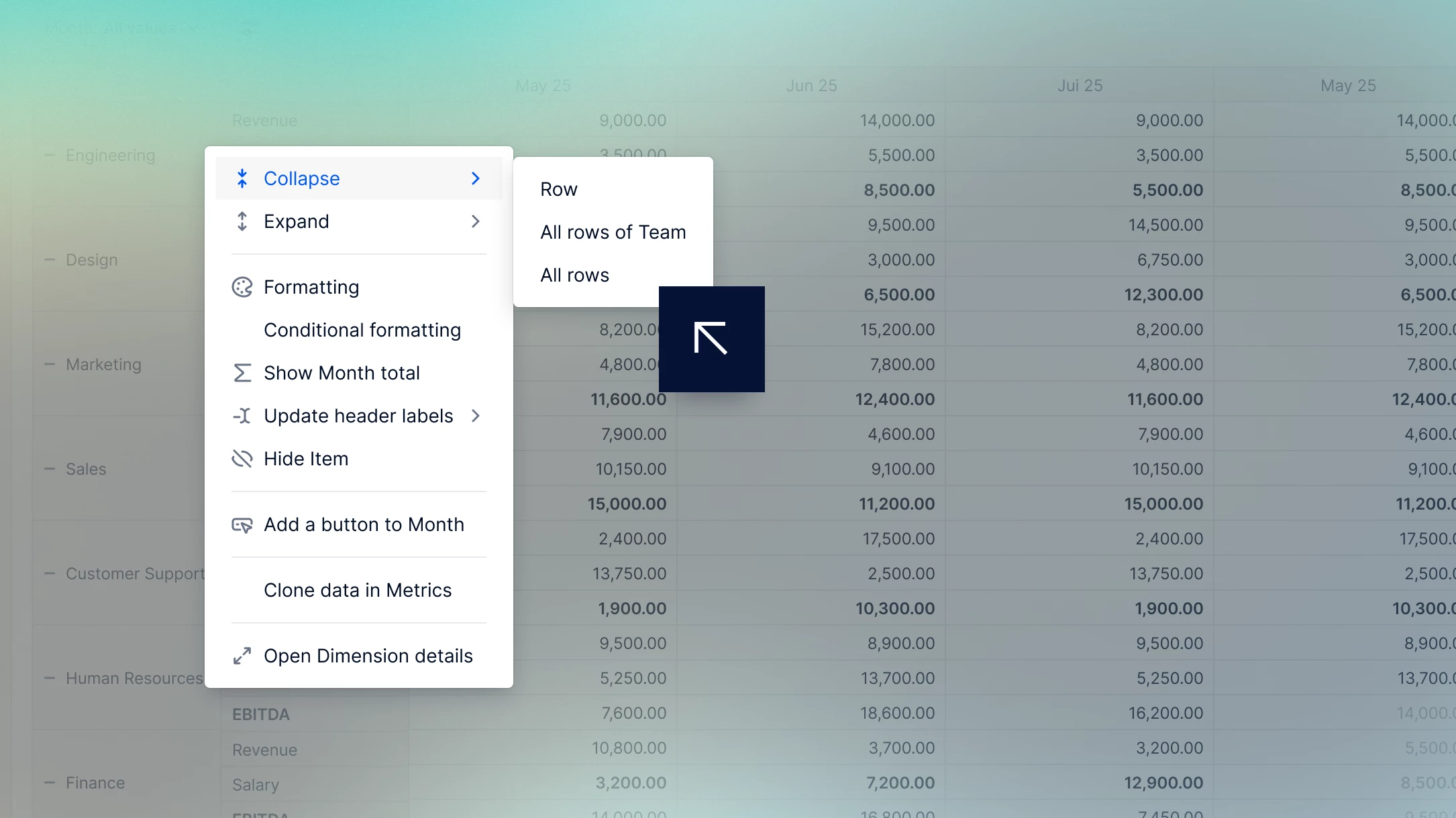 You can now instantly collapse or expand all rows and columns in a grid, making it easier to manage complex views. Start from a fully collapsed layout, then expand only the Items that matter most to your analysis. You can also set default expansion states for Items and their children to control how your grid appears.