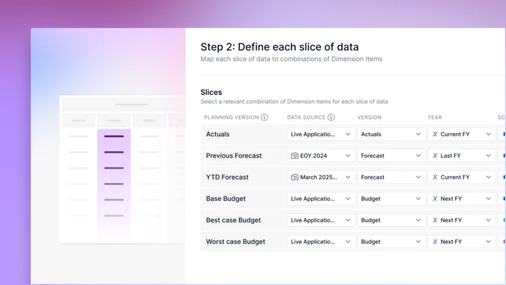 With Data Slices, you can compare only the data you need without juggling multiple selectors. Each Slice represents a meaningful combination of Items, like Actuals 2025, and simplifies multi-Dimension version management for users. Add Slices to any View directly from the Pivot panel to streamline your analysis. Learn more.