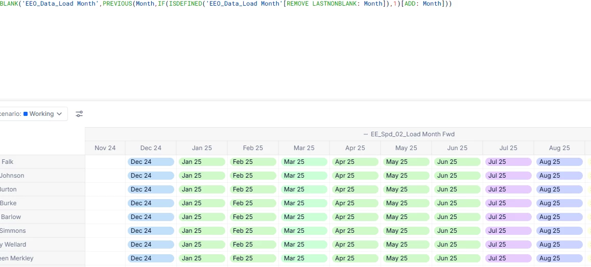 My headcount planning app currently uploads a headcount report on a monthly basis and the forecast basically rolls forward after every new month and the only way I can compare changes over months is to take a snapshot and change the switchover month.
