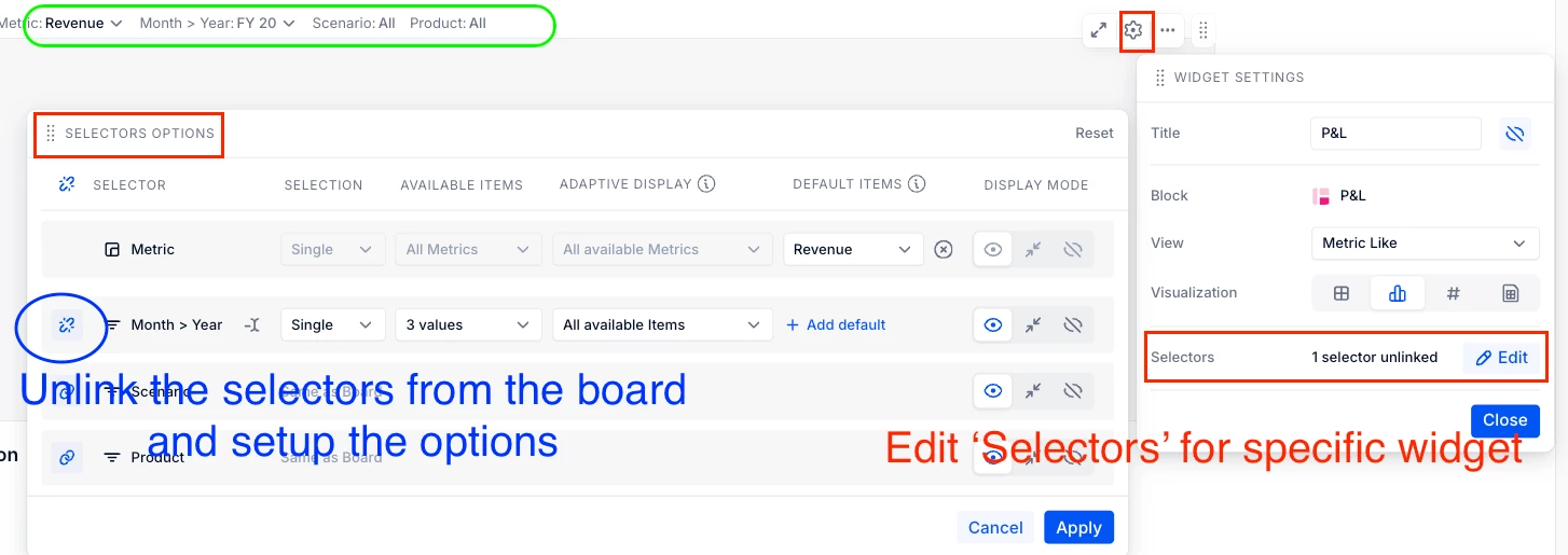 I understand we can use page selectors, but I want this set up for a specific widget and not for the whole board.