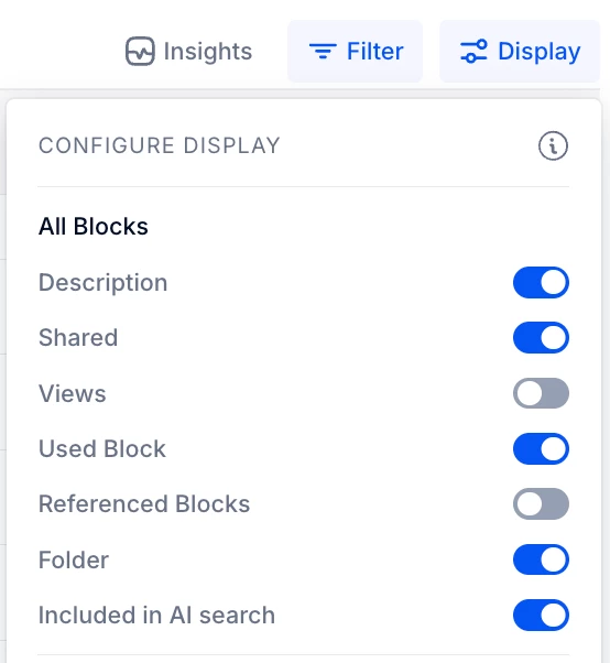 In order to quickly and automatically create documentation, is there a way to display the description of all metrics used in a board or in a table?