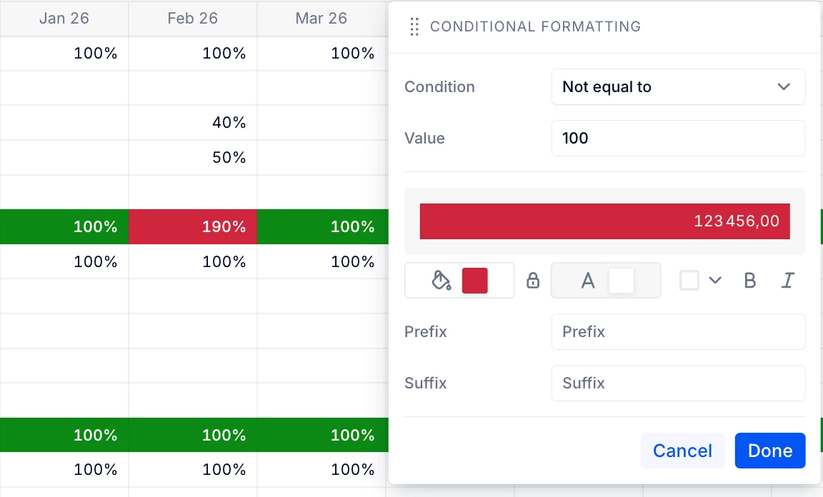 - Is there a way to highlight that each subtotal by model should be equal to 100%?