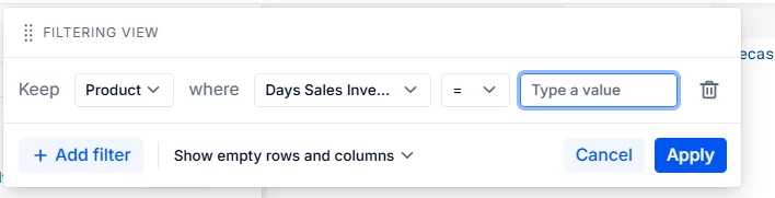 I set up a filter to display rows where a numeric metric is greater than a value. Is there any to test the numeric metric against another numeric metric, rather than the value input?