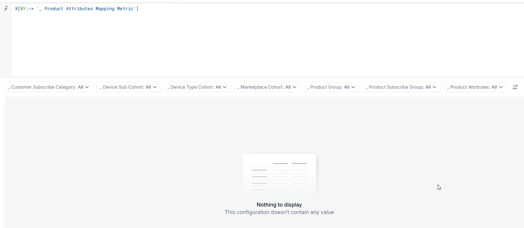 Now with the Result Metric, I get the dreaded “Nothing to display” message as no values are returning. My immediate guess is that it is again related to blanks but I am wondering if there could be something else at play here.