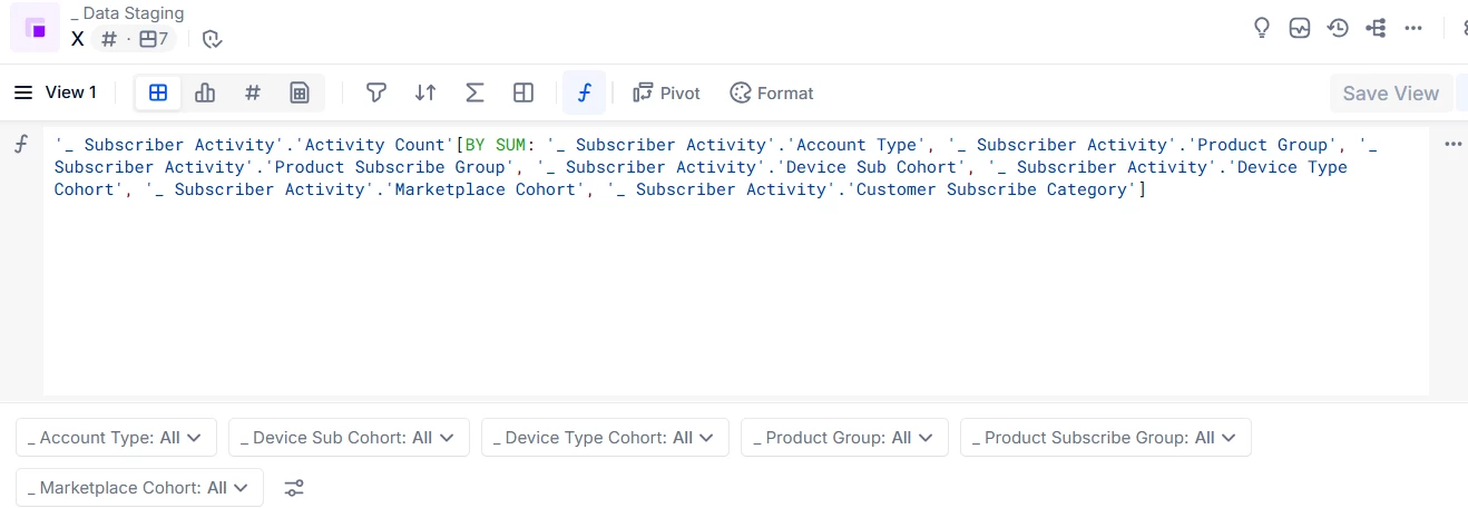 Assuming none of the 7 drivers can be empty, I would suggest using a mapping Metric of type dimension ‘Product Attribute’ dimensioned by ‘Account Type’, ‘Product Group’, ‘Product Subscribe Group’, ‘Device Sub Cohort’, ‘Device Type Cohort’, ‘Marketplace Cohort’ and ‘Customer Subscribe Category’