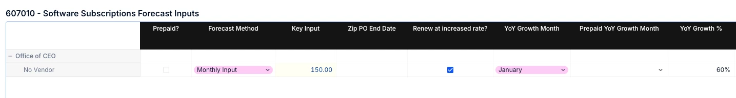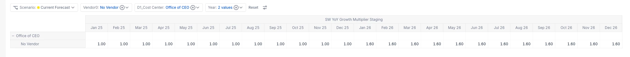 If the month is in an actual period, don’t grow the software period until the following year (example: if we had a software planned to grow in January, for 2026 we wouldnt see any growth but in January 2027 we would see the growth rate).