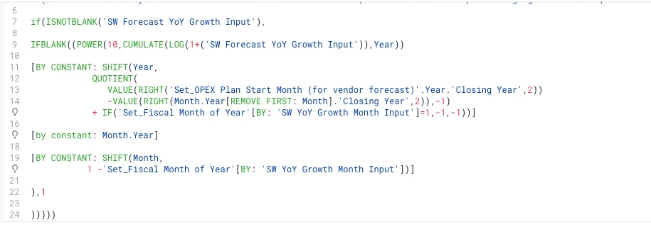 I want to be able properly forecast the growth rate through time. Right now for Software, we select what month we’d like to grow the monthly cost and by what %. I’d like the formula to work as following: