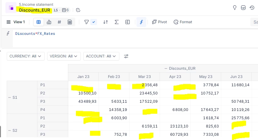 I aligned all the Metrics with their s dimension so that Discount and Gross Sales have the same structure; I no longer get an error message, but this does not solve the problem.