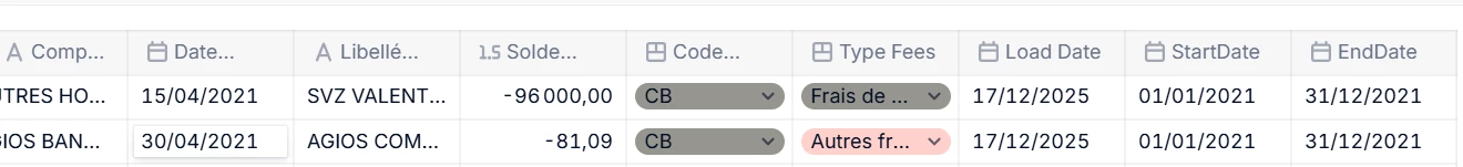 Could someone help me understand why the “type fees” dimension was not updated, even though I selected “delete all items” for my transaction during the load from the Azure SQL table?
