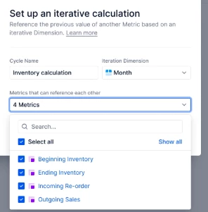 Instead, while setting up iterative calculation to use PREVIOUSOF, this is my current interface