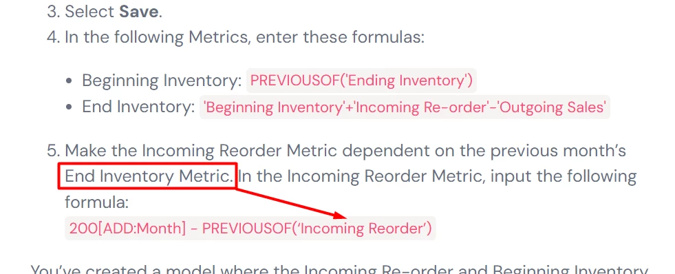 Hi Pigment - If the dependency is the previous month end inventory, why do we use the incoming order in the formula please.