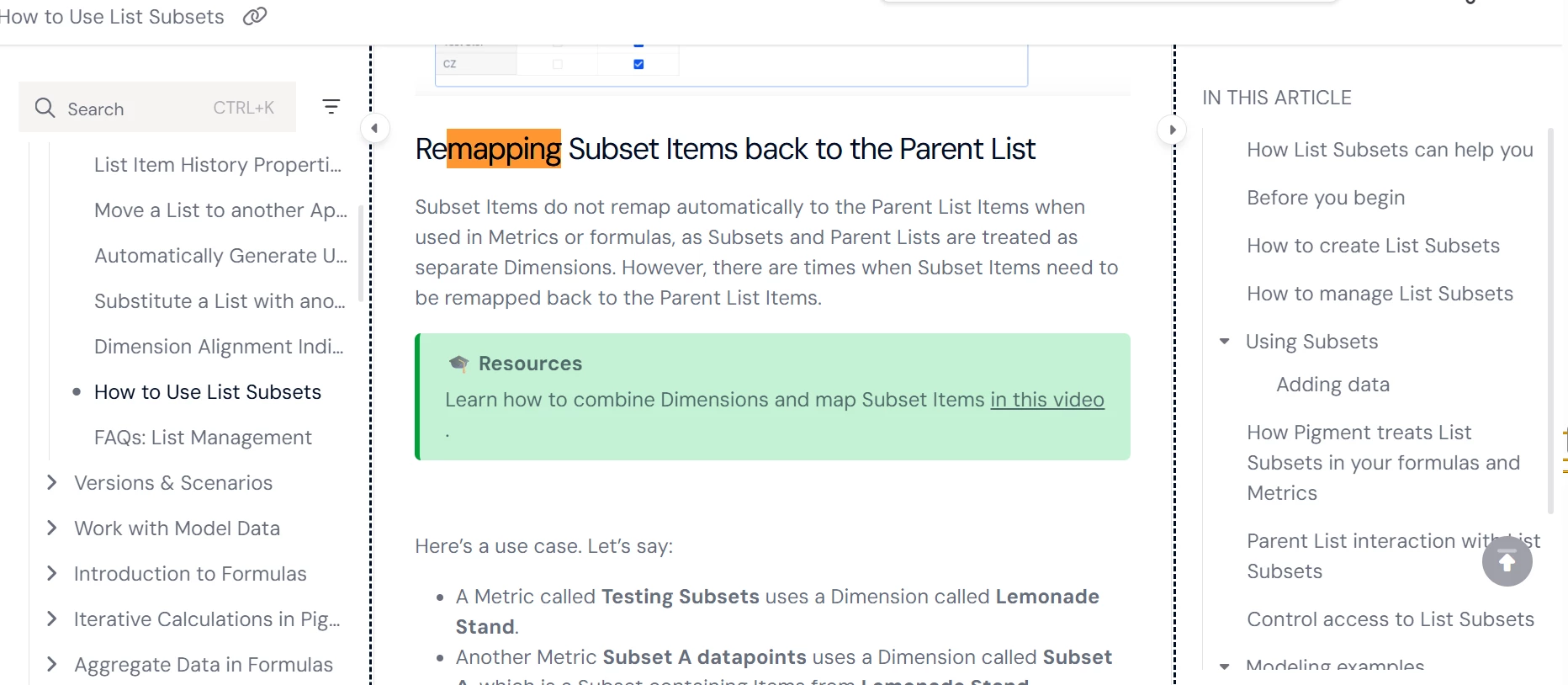 I have a target metric containing a subset. This dimension is a subset of a list present in a source metric. When I reference the source metric the data does not allocate over the subset list items as I would expect.