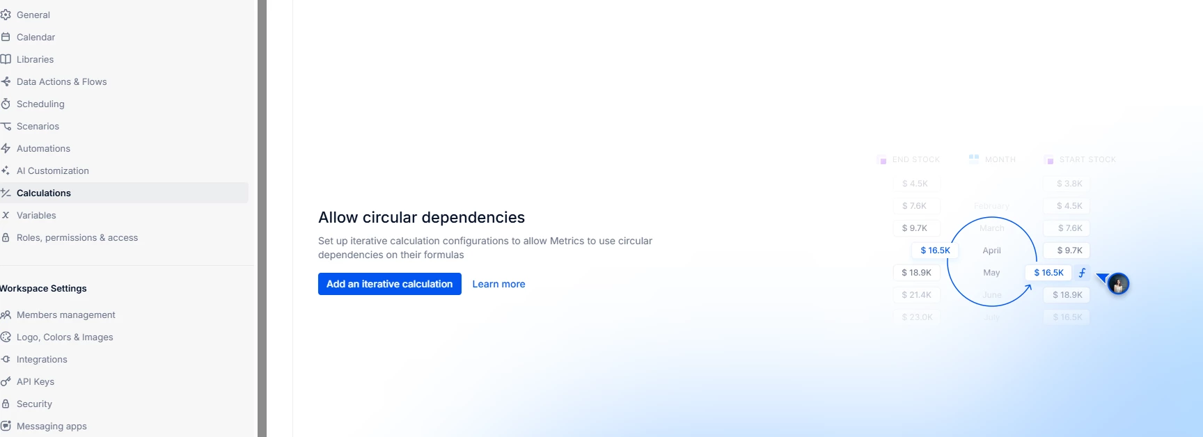 Instead of showing options for Cycle Name, Iteration Dimension, and Metrics That Can Reference Each Other (as mentioned in the article), it only gives me the option to add an iterative calculation and asks me to select the Base Metric and Allowed Metric.