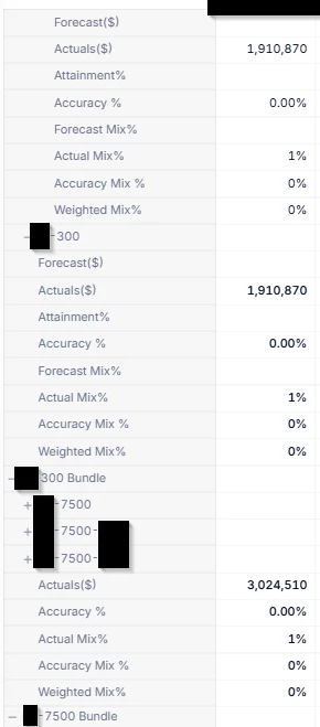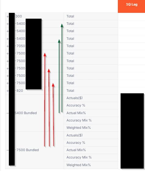 Basically, what we’re trying to achieve is to display calculated items at the bottom of our grid for specific product lines. It works for the 5400s, since there are only two items in that bundle, but not for the 7500s, which include three. We also tried using cumulate on the calculated item, but it didn’t work since the items aren’t sequential.