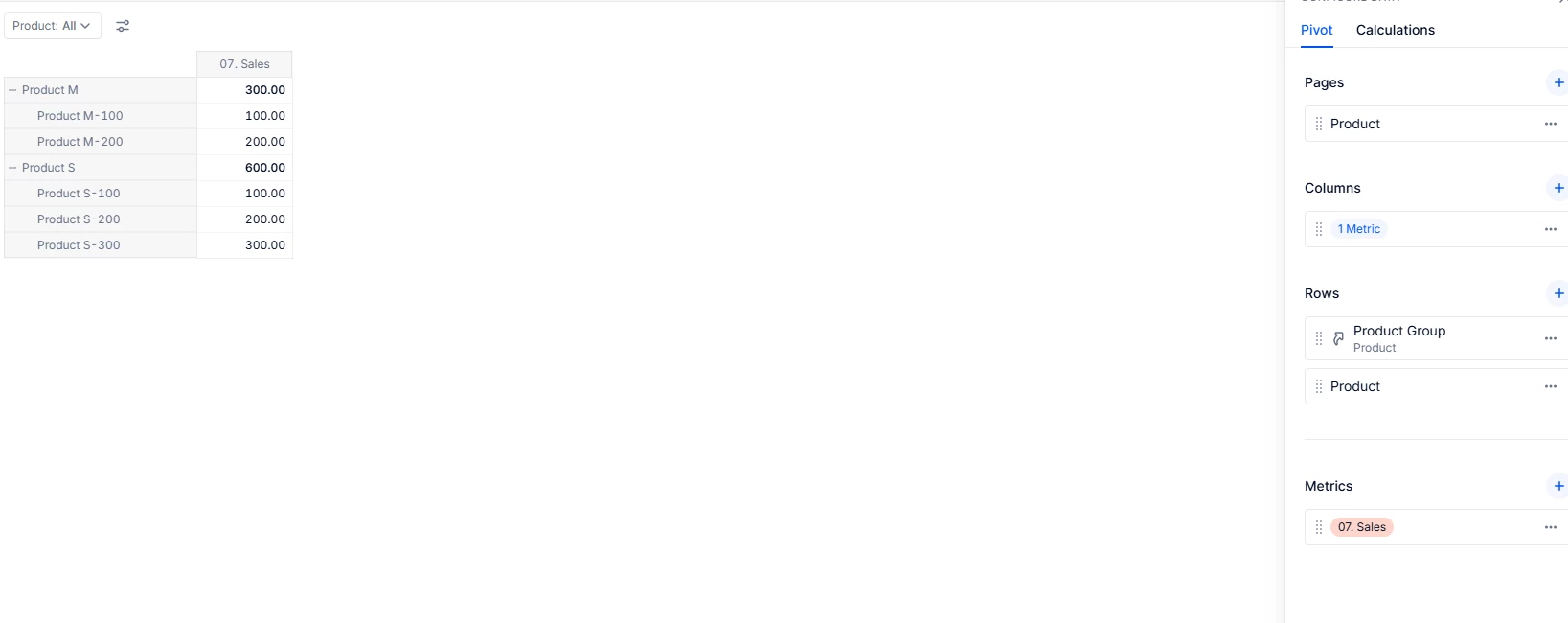 Finally, add the Product Group dimension to your table to enable sales aggregation at the group level.