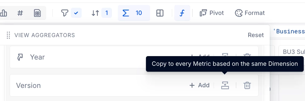 Hello, I noticed that there were some adjustments made to view aggregators functionality in widget. Previously it was possible to remove the total from the dimensions in grid an copy it over to every metric, but now this button is unavailable. Are you planning to restore it? Thank you!