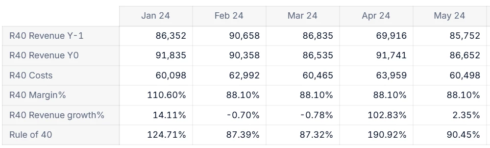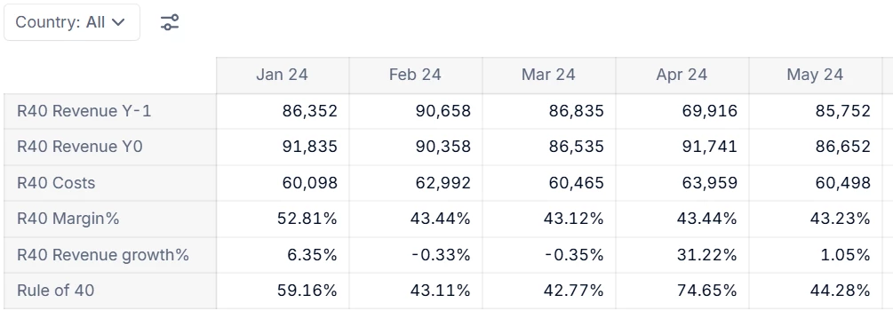 ForRule of 40add a formula:'R40 Margin%' + 'R40 Revenue growth%'