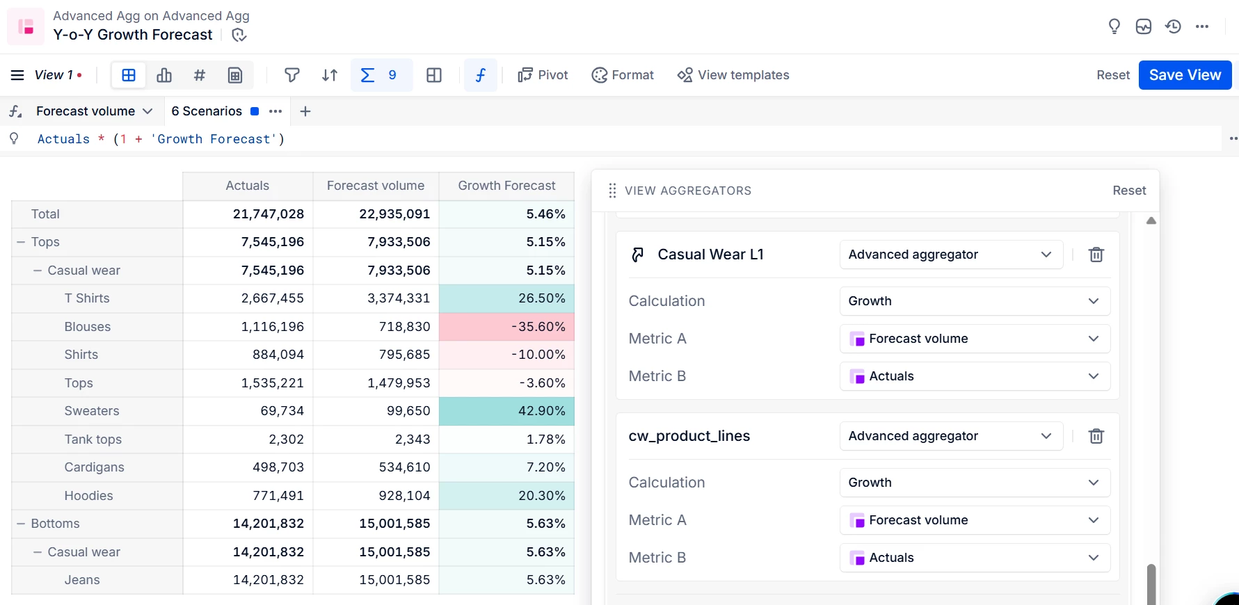 Select yourForecast volumeMetric for Metric A and yourActuals Metric for Metric B.